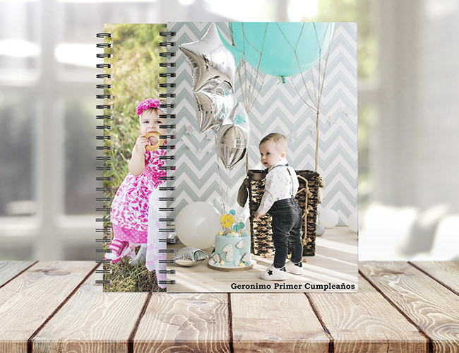 El Photobook Anillado 20x28, es un álbum de fotos de tapa y contratapa dura de 20x28 cm. anillado en formato vertical. Las tapas son completamente personalizables.